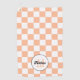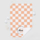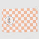 Chequered peach white geometric retro Monogram Golf Towel. Personalise Golf Accessories with your custom initial and name. Cool retro peach chequered geometric square pattern designed gift for golf players.