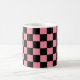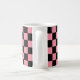 Abstract digital art of pink and black squares in a chequered formation.With the ability to change the white squares by changing the background colour to match the white squares.