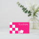 Make a lasting impression with this cool and modern business card design featuring pink and white chequered pattern and the backgrounds are girly pink and light pink.