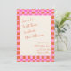 Celebrate in bold, retro style with this vibrant bridal shower invitation featuring a playful pink and orange chequerboard border. The quirky handwritten script adds personality and warmth, while the asymmetrical layout keeps things modern and fun.