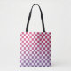 Chequered pattern features a gradient of dark pink to purple squares next to white squares. The coloured squares gradually change from raspberry pink to purple.