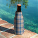 Chequered Plaid Beige Blue Grey And Peach Bottle Cooler