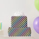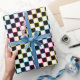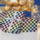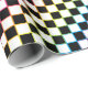 Abstract digital art of white and rainbow coloured squares in a chequered formation.
