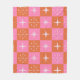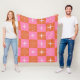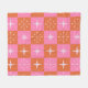 Chequered Retro stars pattern pink orange Fleece Blanket