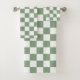 Chequered Sage Green and White Bath Towel Set