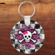 Chequered Skull With Hot Pink Splatter Key Ring