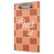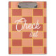 Pink Red Chequered Square Pattern Clipboard designed By Nisha Prabhu. Fully Customisable. Personalise with your name. Introducing the Pink Red Chequered Square Pattern Personalised Clipboard! This stylish and functional clipboard is perfect for adding a pop of colour and pattern to your daily tasks. The beautiful pink and red chequered square pattern on the clipboard's surface creates a visually appealing design that is sure to stand out. Whether you're taking notes, organising documents, or completing forms, this clipboard ensures a smooth and efficient workflow. To make it truly yours, you have the option to personalise the clipboard with your name, initials, or a special message. This customisation adds a personal touch and makes the clipboard uniquely yours. It's the perfect accessory for students, professionals, or anyone who values both style and functionality. Whether you're in the classroom, office, or on the go, this clipboard is a practical and fashionable choice. With its eye-catching design and personalised touch, it's sure to make a statement while keeping your papers organised and secure.