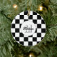 Chequered squares black and white retro Monogram Christmas Ornament. Chequered squares geometric retro pattern Holiday gift. Vintage tile black white modern chequered. Personalise with your custom initial and name.