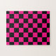 Chequered squares hot pink black geometric retro jigsaw puzzle