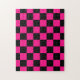Chequered squares hot pink black geometric retro pattern Puzzle gift for her. Cool retro chequered geometric square pattern. Vintage tile black and hot pink modern chequered.