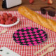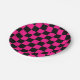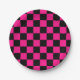 Chequered squares hot pink black geometric retro paper plate