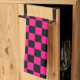 Unique Home Kitchen Dining Linens Towels. Chequered squares hot pink black geometric retro pattern gift for her. Cool retro chequered geometric square pattern. Vintage tile black and hot pink modern chequered.