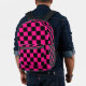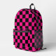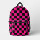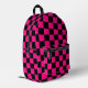 Chequered squares hot pink black geometry Printed Backpack. Cool fashion accessory bag for her. Cool retro chequered geometric square pattern. Vintage tile black and hot pink modern chequered. Create a unique and personalised backpack with a custom touch!