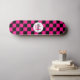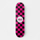 Chequered squares hot pink black retro Monogram Skateboard