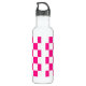 Chequered squares hot pink white geometric retro pattern Water Bottle, gift for her. Cool retro chequered geometric square pattern. Vintage tile white and hot pink modern chequered.