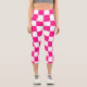 Chequered squares hot pink white geometric retro pattern Capri Leggings, Clothing gift for her. Cool retro chequered geometric square pattern. Vintage tile white and hot pink modern chequered.