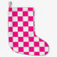 Chequered squares hot pink white geometric retro small christmas stocking
