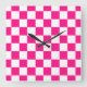 Chequered squares hot pink black geometric retro pattern Wall Clock gift for her. Cool retro chequered geometric square pattern. Vintage tile black and hot pink modern chequered.