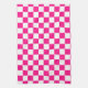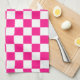 Chequered squares hot pink white geometric retro pattern Kitchen Towel. Unique Home Kitchen Dining Linens Towels, gift for her. Cool retro chequered geometric square pattern. Vintage tile white and hot pink modern chequered.