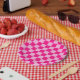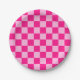 Chequered squares light hot pink geometric retro pattern Paper Plates. Cool retro chequered geometric square pattern. Vintage tile pink modern chequered.