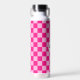 Chequered hot pink geometric retro Monogram Insulated Water Bottle. Chequered geometric retro pattern Water Bottle. Practical gift for active lady. Cool retro chequered geometric square pattern. Vintage tile light pink hot pink modern chequered. Personalise Monogram with your custom initial and name.