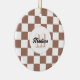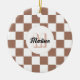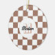 Chequered squares mocha brown white retro Monogram Ceramic Ornament