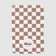 Chequered squares mocha brown white retro Monogram Golf Towel. Personalise Golf Accessories with your custom initial and name. Cool retro chequered geometric square pattern mousse and white gift for golf players.