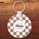 Chequered squares mocha brown white retro Monogram keychain. Accessories gift Cool retro chequered geometric square pattern. Personalise with your custom initial and name.