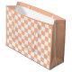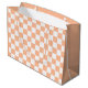 Chequered squares peach orange white geometric retro pattern. Cool retro chequered geometric square pattern. Vintage tile white and peach light orange modern chequered.