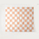 Chequered squares peach and White geometric retro pattern Wall Tapestry. Art Décor gift for her home. Cool retro chequered geometric square pattern. Vintage tile light orange and White modern chequered.