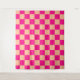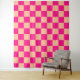Chequered squares peach hot pink retro pattern Wall Tapestry. Art Décor gift for her home. Cool retro chequered geometric square pattern. Vintage tile light orange and hot pink modern chequered.