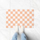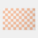 Chequered squares peach orange white geometric retro pattern. Cool retro chequered geometric square pattern. Vintage tile white and peach light orange modern chequered.