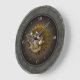 A combination of a stone-like background and a dark toned chequerboard artwork gives this steampunk style wall clock the illusion of depth. A few gears, of various colours, are the main feature.