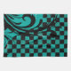 Chequered Swirly Pattern | Teal Blue, Black Tea Towel