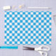 Abstract digital art of turquoise and white squares in a chequered formation.