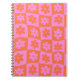 Chequered Warped Retro Pink and Orange Flowers Notebook