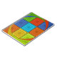 The central portion features a grid or chequerboard pattern composed of squares in red, golden yellow, green, and cyan.