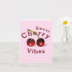 Radiate fun and playful energy with this cherry greeting card. This unique design features tones of scarlet, blush, violet, chartreuse. It is easy to change the text to personalise. I created this pattern from an image in my original acrylic painting.