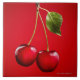 Cherries with Leaf on Red Background Ceramic Tile