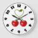 Some really delicious looking red cherries. This design makes you want to eat some. The design has two lovely looking red cherries with there stems sticking out. This cherries with stems design looks great on this clock. Perfect for yourself or as a gift