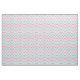 This fabric is decorated with a chevron pattern outlined in white and coloured in light peach, cherry red and turquoise blue. The lines are offset to make each line pop in an optical illusion. There is a cement texture over top of this pattern, giving this chevron a vintage, faded look.