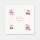 Add a sweet and trendy touch to your party table with these delightful cherry-themed napkins! Featuring a playful pattern of cherry-patterned balloon dogs and vibrant cherries, these napkins are the perfect accessory for a 'cherry sweet' birthday bash. Personalise them with your child's name and age to create a coordinated and professional look for your celebration.