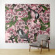 Cherry blossom and chickadees on pink tapestry