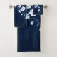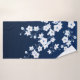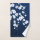 Classic white cherry blossom branch on a navy blue background. Cute botanical design in maritime colours for him and her.