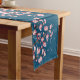 Beautifully detailed cherry blossoms tree branch design on a dark navy blue background table runner.