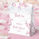 This cherry blossom bridal shower favour box features pretty pink cherry blossoms on a white background. Botanical box with a thank you text, bridal shower text and a custom bride-to-be name in an elegant calligraphic script.