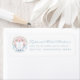 This return address label features a beautiful cherry blossom crest with names in a script font and the address in all caps.