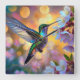 Cherry Blossom Fantasy Hummingbird Square Wall Clock