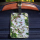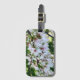 Luggage tag featuring a photo of pale pink cherry blossom flowers.