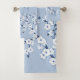 Classic white cherry blossom branch on a light blue background. Cute botanical design in maritime colors for him and her.